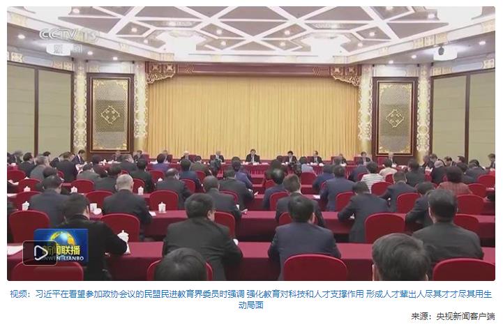 6日,中共中央总书记、国家主席、中央军委主席习近平看望参加全国政协十四届三次会议的民盟、民进、教育界委员,并参加联组会。