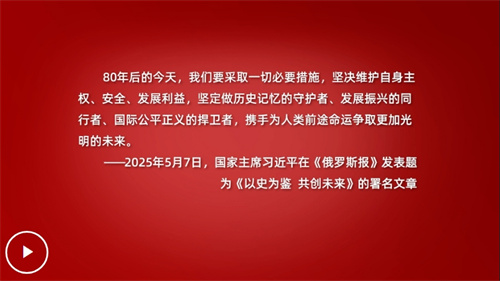 展望未来,在变乱交织的世界中,习近平强调“以史为鉴”,坚定做历史记忆的守护者、发展振兴的同行者、国际公平正义的捍卫者,携手为人类前途命运争取更加光明的未来。