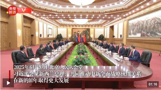 6月20日上午,国家主席习近平在北京人民大会堂会见来华进行正式访问的新西兰总理拉克森。
