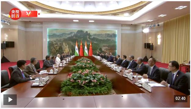习近平强调,今年是中印建交75周年。双方要从战略高度和长远角度看待和处理中印关系,通过天津会晤再提升,推动两国关系持续健康稳定发展。要共同展现历史担当,坚持多边主义,加强在重大国际和地区问题上的沟通和协作,捍卫国际公平正义,携手推动世界多极化和国际关系民主化,为维护亚洲乃至世界和平和繁荣作出应有贡献。