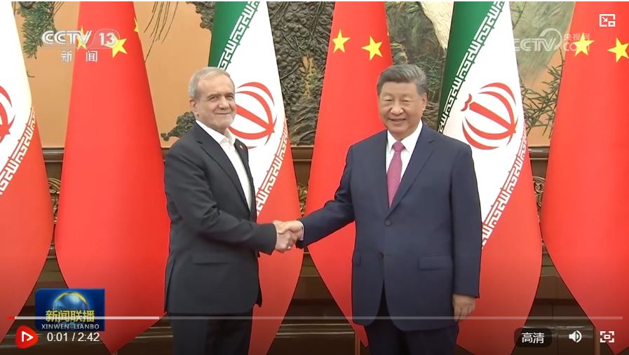 9月2日下午,国家主席习近平在北京人民大会堂会见来华出席2025年上海合作组织峰会和纪念中国人民抗日战争暨世界反法西斯战争胜利80周年活动的伊朗总统佩泽希齐扬。