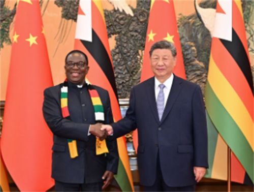 新华社北京9月4日电(记者曹嘉玥、邵艺博)9月4日上午,国家主席习近平在北京人民大会堂会见来华出席纪念中国人民抗日战争暨世界反法西斯战争胜利80周年活动的津巴布韦总统姆南加古瓦。两国元首宣布将双边关系提升为中津全天候命运共同体。