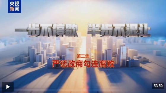 由中央纪委国家监委宣传部与中央广播电视总台央视联合摄制的电视专题片《一步不停歇 半步不退让》,1月12日在总台央视综合频道晚8点档播出第二集《严惩政商勾连腐败》,央视新闻新媒体平台同步播发。