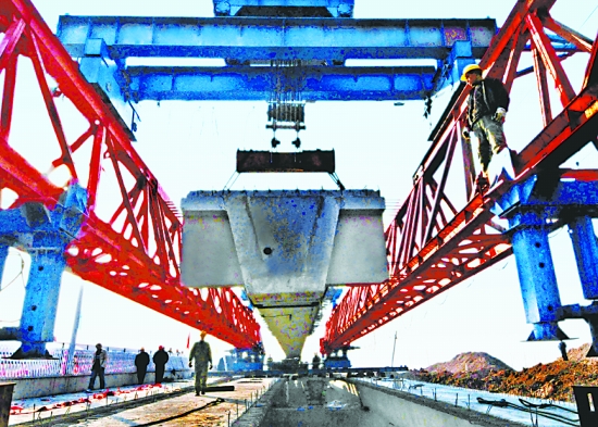 10时02分,随着市委书记路国贤宣布迎宾路改造工程大沙河桥合龙,桥面上,巨大的龙门架将最后一块重达95吨的箱梁缓缓放在盖梁上。这标志着我市2008年重点工程迎宾路改造项目圆满完成了年度建设任务。路国贤以及市委常委、常务副市长赵海燕同数百名嘉宾、工程建设者见证了这一激动人心的时刻。