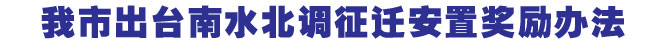 我市出台南水北调征迁安置奖励办法