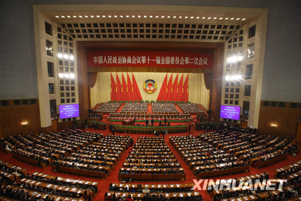 大会首先审议通过了政协第十一届全国委员会第二次会议议程。