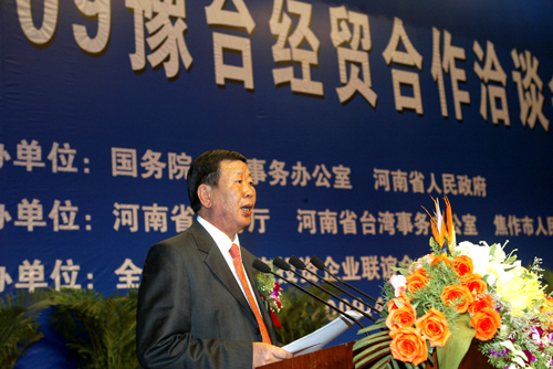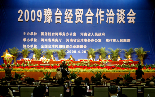 今天(4月20日)上午,2009豫台经贸合作洽谈会在焦作隆重开幕。省委书记、省人大常委会主任徐光春,省委副书记、省长郭庚茂对09豫台经贸合作洽谈会暨全国台企联第一届会员代表大会第三次会议召开发来贺信。省委常委、统战部长刘怀廉,国务院台湾事务办公室副主任孙亚夫、全国台湾同胞投资企业联谊会会长张汉文出席开幕式,副省长宋璇涛主持。来自河南省18个省辖市以及招商部门的负责同志、台商共500多人参加了会议。