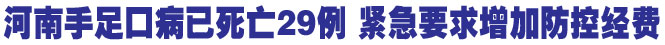 河南省目前已专门下发了《河南省人民政府关于进一步加强手足口病防治工作的紧急通知》,要求切实加大对疾病预防控制经费的投入,确保免疫规划补助等公共卫生经费纳入本级财政预算,足额及时到位,经费不够的要予以追加。河南商报