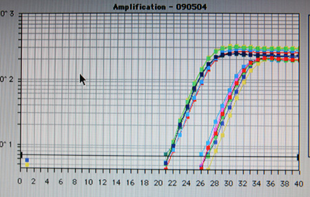 记者在实验室电脑前拍下了甲型H1N1基因PCR扩增曲线图。(见图)