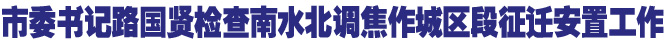 本报讯(记者石坚)昨日(29日)下午,市委书记路国贤检查了南水北调焦作城区段征迁安置工作。路国贤强调,在南水北调工程建设中,每一个焦作人都是局中人,都要积极支持和参与这一伟大工程;要加强舆论引导和宣传,进一步坚定信心,形成合力,克难攻坚,及时妥善解决有关问题,务必把这项重大工程建设好。市委副书记王明德,市委常委、秘书长田跃曾,焦作军分区司令员阚辉,副市长贾书君一同检查。