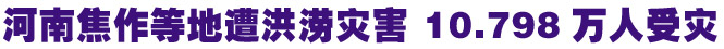 本报讯 昨日,记者从省民政厅获悉,8月1日至3日,我省洛阳市的宜阳县、孟津县、偃师市,郑州市的新密市,焦作市的沁阳市、孟州市相继遭受大风暴雨袭击,全省受灾人口10.798万人,直接经济损失0.83亿元。据了解,宜阳县部分乡镇短时降雨量达100毫米以上,偃师市府店镇1小时降雨量达64毫米,并伴有7级左右大风,新密市的米村镇1小时降雨量达71毫米,沁阳市的崇义、王曲、王召3个乡(镇)短时降雨量达30毫米,并伴有8级以上大风。由于降雨量大,时间相对集中,致使部分农作物受灾,群众住房倒塌或损坏。孟津县局部发生山体坍塌,造成1人因灾死亡。