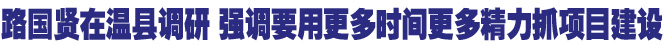 本报讯 (记者张蕊 实习生杜笠) 昨日上午,市委书记路国贤在温县调研时强调,全市上下要进一步增强项目意识,抢抓机遇,用更多时间、更多精力抓项目建设,推进焦作经济平稳较快发展,为在全省率先实现新跨越夯实基础。市委常委、秘书长田跃曾一同调研。
