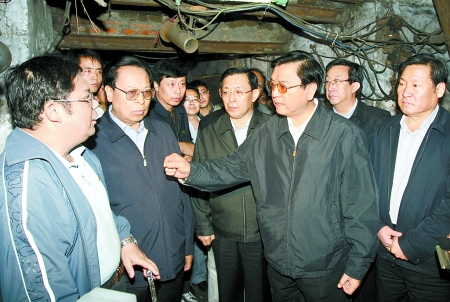 张德江首先来到副井升降口,详细了解抢险救援的开展情况,并亲切看望慰问了来自中平能化集团的抢险救援人员。看到大家虽然满身煤灰、一脸倦容,但精神状态很好,求战欲望高涨,张德江说:“你们发扬一方有难、八方支援的精神,不顾个人安危,冲在抢险救援第一线,这种敢打硬仗、勇于牺牲的精神值得我们提倡、更值得我们学习,我代表党中央、国务院,代表胡锦涛总书记、温家宝总理向你们表示亲切慰问和崇高敬意。”