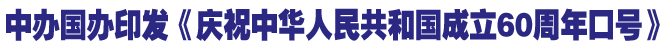 新华网北京9月11日电中共中央办公厅、国务院办公厅近日印发了《庆祝中华人民共和国成立60周年口号》,全文如下: