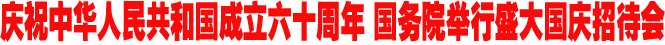 据新华社北京9月30日电(记者赵承、车玉明)沧桑巨变波澜壮阔,共同祝愿伟大祖国。国务院30日晚在人民大会堂举行盛大国庆招待会,热烈庆祝中华人民共和国成立60周年。胡锦涛、江泽民、吴邦国、温家宝、贾庆林、李长春、习近平、李克强、贺国强、周永康等党和国家领导人同4000余名中外人士欢聚一堂,共庆佳节。