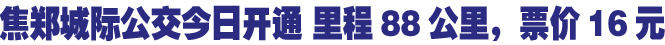 据了解,即将开通的焦郑城际公交,是继我省郑开、郑新、新开、郑许城际公交开通之后的第五条城际公交线路。