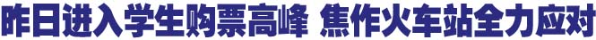 据介绍,从5日开始,来购票的学生明显增多,但还不用长时间排队;昨日学生数量猛增,河南理工大学、焦作师专、焦作大学等高校的学生都开始购买车票,进入学生客流购票高峰期。