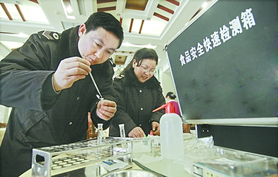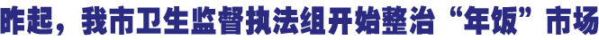 今年是我市大规模、规范化、集中对“年饭”市场进行整治的第一年。昨日起,市卫生监督执法局成立3个执法组,用先进的检查仪器,在全市范围内开展“年饭”市场专项查处行动。