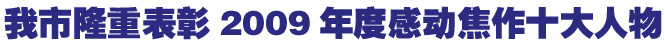 据悉,由市委宣传部、市委政法委、焦作军分区政治部、市总工会、团市委、市妇联、市广播电影电视局和焦作日报社主办的“中国银行杯”2009年度感动焦作十大人物评选活动从去年9月份正式启动。经过推荐、初评、总评,确定崔爱梅、王卫东、李晓拴、王强、赵长礼、李战通、李建国、赵会议、武苗苗、原永振10人当选感动焦作十大人物,郭小亮、杜满堂、范占先、韩跃平、马海洋获得感动焦作十大人物特别奖。