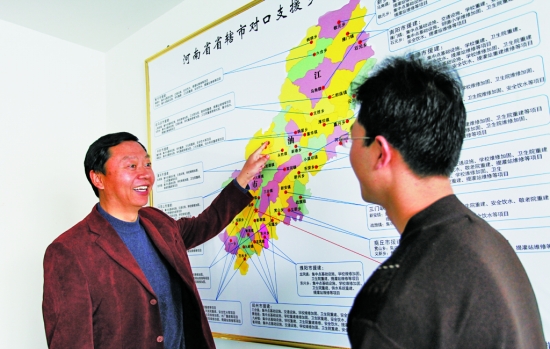 见到焦作市水利局副局长崔元钊时,他刚风尘仆仆从阿坝藏族羌族自治州汶川县返回江油。此行,他是受河南省对口支援江油市恢复重建前线指挥部的委托,带领江油市有关局委负责人前往汶川取经的。他很忙,既是前线指挥部副指挥长,又担任着江油市委常委、副市长的职务,工作安排得满满的,担子之重可想而知。“好在艰难的日子就要过去了。”站在即将竣工的“中原江油连心桥”前,崔元钊掩饰不住内心的激动,“按照省委、省政府的要求,河南援建的总投资30亿元的所有项目将在今年5月12日前基本完成,比国家提出的三年任务两年基本完成的目标提前四个月。”记者了解到,目前,所有对口支援工作到了最后冲刺阶段,投资3亿元的江油河南工业园已接近尾声,最后一个援建项目“中原爱心小区”三期工程8月底前竣工。