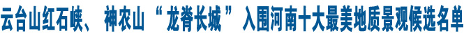 河南何处山峰、峡谷、溶洞最优美?何处地质遗迹最具科学价值?今年1月份开展的河南首届“十大最优美的地质景观”和“十大最具科学价值的地质遗迹”评选活动,将为人们揭晓这一答案。