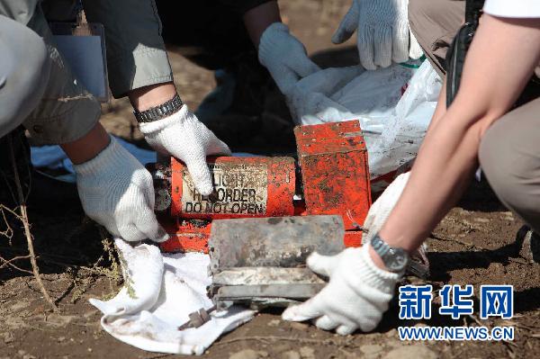 8月25日,在飞机失事现场,客机“黑匣子”被找到。8月24日21时36分左右,一架编号为VD8387的河南航空公司飞机在接近伊春机场跑道时失事。机上共有旅客91人(其中儿童5人),机组5人。新华社记者 邢广利 摄