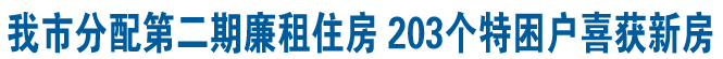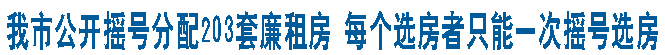 本报讯 (记者梁智玲) 我市2010年廉租住房分配仪式昨日在市房产管理中心举行,对203套廉租住房进行了摇号分配。按照《2010年焦作市廉租住房实物配租分配方案》相关规定,享受廉租住房实物配租保障的家庭,不再享受其他廉租住房保障待遇,摇号分配到廉租住房的家庭如果放弃选房,两年内不予接受其申请和安排实物配租。