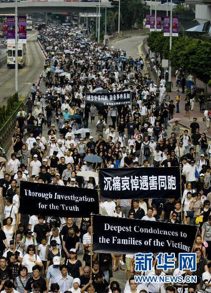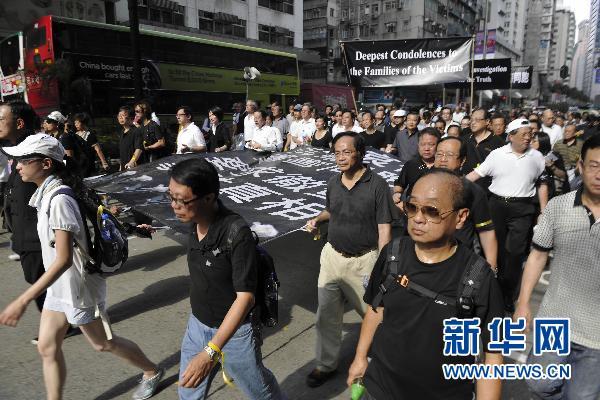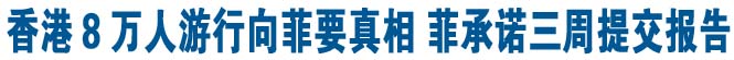 8万香港人在平和气氛下参与游行,悼念在菲遇难同胞。 港八万人游行悼念遇难者 香港立法会发起游行要求菲律宾彻查人质事件 香港特区立法会各政团29日下午联合发起“沉痛哀悼遇害同胞 要求彻查事件真相”游行。游行在平和的气氛下举行。 香港特区立法会各政团29日下午联合发起“沉痛哀悼遇害同胞 要求彻查事件真相”游行。主办方表示,参加游行者达8万人。游行在平和的气氛下举行。 香港康泰旅行社一个包含20名香港游客和1名香港领队的旅游团23日在马尼拉参观行程中被歹徒劫持,造成8死7伤的惨剧。 29日15时,30多位立法会议员走上维多利亚公园的临时舞台,带领市民一起为人质事件遇难同胞默哀3分钟。 特区立法会主席曾钰成表示,立法会全体议员都对此次事件中的死难者表示沉痛哀悼,对死伤者及其家属致以深切慰问,而菲律宾政府在事件当时的处理方式有明显错失,使立法会全体议员都感到强烈不满。 游行队伍在15时20分许出发。曾钰成和立法会议员手持写有“沉痛哀悼遇害同胞 要求彻查事件真相”的条幅,走在队伍最前面。参与游行的市民大都穿着白色或黑色的衣服,表示对遇难同胞的悼念。(新华) 菲警方称已弹道测试 “确定”8名港人遭枪手打死 本报讯 29日,菲律宾警方表示,他们可以“确定”在上周香港旅游团在菲人质劫持事件中,8名遇害者都是死于劫持者门多萨的枪下。 据报道,29日,菲律宾国家警察(PNP)发言人克鲁兹表示,经子弹弹道测试,这8名遇难港人的伤口均是遭劫持巴士内一把大口径武器造成的。 克鲁兹表示,“相当程度上,我们可以肯定地说,受害者是被门多萨射杀的”。他同时说,“验尸结果显示,击中受害者的所有子弹都来自高火力武器”。 克鲁兹表示,劫匪门多萨虽然是一名曾获杰出警察称号的前警官,但其在20世纪90年代曾以抢劫和勒索被提出控告。但是,指控因受害者未能出庭作证而被撤销。而且,经菲律宾警方进一步调查,门多萨因今年早些时候勒索他人财物遭解职,他还被指犯下其他罪行。 (中新) |