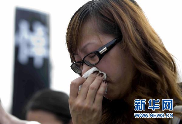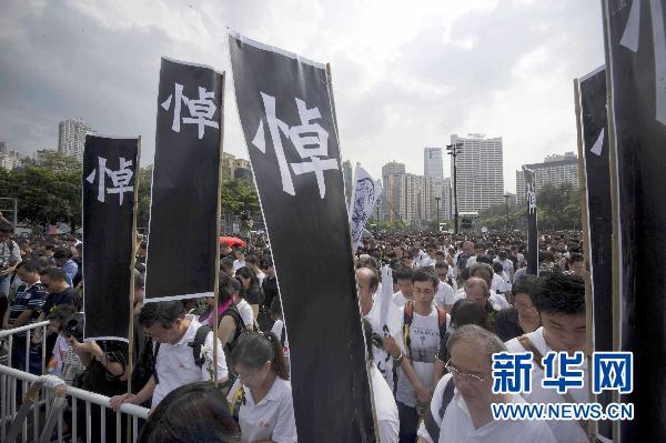 8月29日,游行市民在遮打花园献花,哀悼遇难同胞。新华社记者吕小炜摄