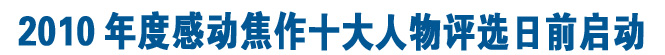 据了解,本年度感动焦作十大人物的候选人,不仅包括生活、工作在焦作本地的焦作人,而且包括在焦作的外地人以及在外地求学、务工、服役、经商的焦作人,《身边的榜样》栏目报道的先进典型,可优先参评“2010年度感动焦作十大人物”。
