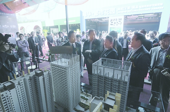 上图 市民在房博会看房。
