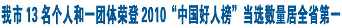 陈珊,26岁,市国土资源局工作人员。2008年11月7日14时,环卫工柳师傅无端被几个暴徒殴打,路过现场的陈珊不顾个人安危,挺身而出,与犯罪分子英勇搏斗,用大无畏的浩然正气,震慑住暴徒,保护了素不相识的环卫工人,捍卫了社会正义和法律尊严。2010年11月入选“中国好人榜·见义勇为好人”。
