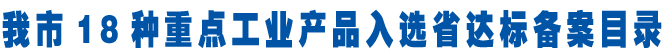 本报讯 (记者许伟涛 实习生杜笠) 记者昨日从市工业和信息化局获悉,经过省工业和信息化厅与省质量技术监督局联合审查,我市风神牌全钢载重子午线轮胎、金箍牌制动器等18种重点工业产品被列入《河南省重点工业产品达标备案目录》,占全省总数的15.8%。