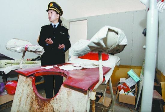 昨日上午,执法人员再次来到该诊所对其进行取缔。执法人员发现,这家面积有15平米的“黑诊所”里,竟然还开展有妇科手术项目。