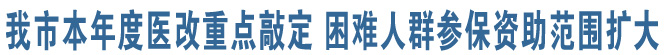 困难人群参保,资助范围扩大。医改工作实施两年来,我市居民的基本医疗保障水平有了很大提高。本年度,我市将继续提高医疗保障水平,扩大门诊统筹范围,普遍开展城镇居民医保、新农合门诊统筹,将基层医疗卫生机构使用的医保目录内药品和收取的一般诊疗费按规定纳入支付范围。资助困难人群参保的范围也将扩大,资助范围从低保对象、五保户扩大到低收入重病患者、重度残疾人、低收入家庭老年人等特殊困难群体。