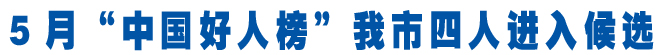 本报讯 (记者齐云霞) 记者昨日从市文明办获悉,经省、市文明办逐级推荐,由中央文明办主办、中国文明网承办的“我推荐、我评议身边好人”活动5月份候选人名单已经公布,我市的王秋生、靳小秀、张玉贵、李军萍被列入“中国好人榜”候选人,接受网民评议投票。