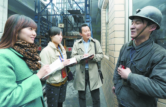 在鑫珠春工业公司,编辑、记者先后深入生产调度指挥中心、安全实习培训基地、木场、制砖厂、充填站、选煤厂、基层区队以及员工公寓,了解该公司运转情况、科技创新成果和员工生产、生活环境,用镜头和笔尖记录矿工们以及全国道德模范谢延信的新生活。