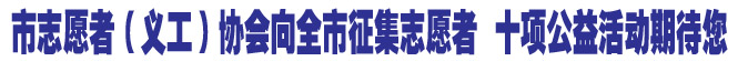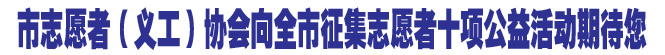 市志愿者(义工)协会将12月3日(本周六)定为公益岗位对接活动日,组织招募的志愿者在全市统一开展志愿服务活动。