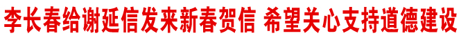 在贺信中,李长春首先向谢延信等全国道德模范及其他们的家人致以节日的问候和崇高的敬意。贺信中说:“2007年以来,中央宣传部、中央文明办等部门组织开展了三届全国道德模范评选表彰活动,经过亿万群众推举和投票,你们光荣当选,成为全社会的道德楷模。你们的善行义举传承中华民族传统美德,弘扬民族精神和时代精神,践行社会主义核心价值体系,代表社会文明进步方向,激励着广大干部群众见贤思齐、奋发有为,在时代发展中迸发出强大的精神力量。”