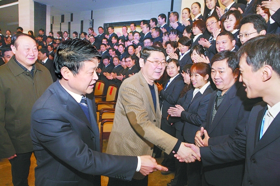 焦作日报社和市广电局全体员工用热烈的掌声欢迎路国贤一行的到来。“辛苦了!”“拜个早年!”路国贤与新闻工作者一一握手,充分肯定成绩,殷切寄语发展。路国贤指出,过去的一年,我市经济社会保持了平稳较快发展,呈现出好的趋势、好的态势、好的气势。这是全市上下共同努力的结果,也与全市新闻单位的辛勤劳动分不开。一年来,全市新闻单位坚持围绕中心,服务大局,做了大量富有成效的工作,在统一全市干部群众思想、形成强大发展合力方面发挥了重要作用,他代表市委、市政府,向全市新闻工作者表示衷心的感谢和亲切的慰问。