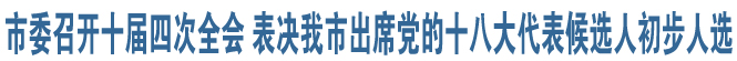 本报讯(记者董柏生、孙军)昨日上午,市委召开十届四次全会,表决我市出席党的十八大代表候选人初步人选。全会由市委常委会主持。