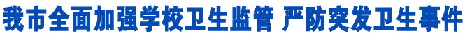 本报讯(记者刘婧)昨日,记者从市卫生局获悉,我市卫生、教育两部门联手全面加强学校卫生管理与监督工作,重点监管学校传染病和常见病防控、饮用水卫生、卫生突发事件应急处置等,保障学校公共卫生安全,严防各类突发卫生事件。