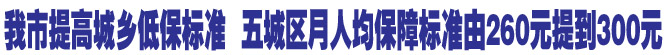 我市提高城乡低保标准 五城区月人均保障标准由260元提高到300元