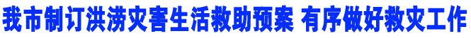 为进一步提高我市汛期防洪的应急反应和紧急救助能力,有序做好救灾工作,最大限度地减轻因灾造成的损失,切实保障受灾群众的生命安全和基本生活,市民政局专门成立洪涝灾害生活救助指挥部,负责灾区群众生活安置及救助工作,下设查灾报灾组、物资保障及调配组、转移安置组、生活安置组、信息报道组。一旦遭遇险情,各级各部门要迅速启动预案,做好洪涝灾民生活安置工作。