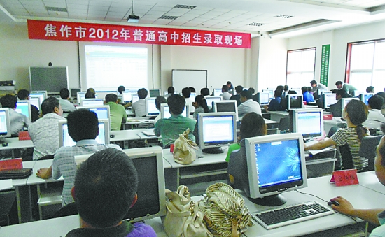 我市普通高中录取工作昨日开始。会后,全市各普通高中招生负责人,走进市教育局信息中心机房开始录取工作,首先进行的是提前批次的录取,分为焦作一中宏志班和各普通高中体艺特长生两个层次。