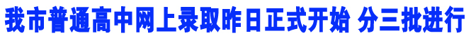 昨日上午,我市2012年普通高中录取工作会议召开。今年,我市首次实行普通高中网上录取,与往年相比,各个批次录取顺序和时间如何安排呢?记者从会上获悉,录取工作实行分批次划线,一次录取的方法,录取顺序为提前志愿录取、批次志愿录取和征求志愿录取。