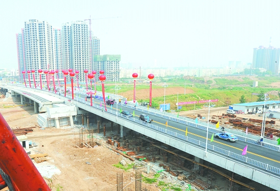 昨日上午,焦东路桥主干道机动车道建成通车。