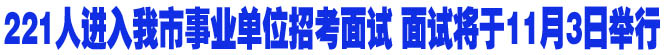 本报讯 (记者杜玲) 记者昨日从市人力资源和社会保障局获悉,2012年我市市直事业单位公开招聘工作人员笔试工作已经结束,面试工作将于11月3日进行。经面试资格确认,共有221人进入面试。