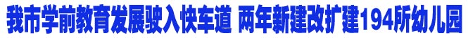 本报讯 (记者杨景鹏 实习生薛文娜) 学前教育的发展事关千家万户的切身利益,为了有效缓解入园难问题,我市从2011年起启动实施了学前教育三年行动计划,使学前教育发展驶入快车道。如今,我市学前教育三年行动计划实施的情况如何呢?记者昨日从市教育局获悉,两年来,我市新建、改扩建194所幼儿园,学前三年毛入园率75%,提前一年完成了毛入园率既定目标。