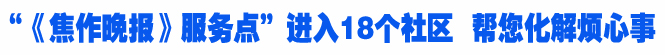 昨日上午,“《焦作晚报》服务点”在解放区民生街道世纪新区社区第一个“挂牌”。“《焦作晚报》服务点”向社区居民提供了记者的联系方式,如果您有啥为难事,请打电话找记者。当天,首批同时“挂牌”的社区还包括解放区新华街道鸿源社区、鑫源社区、丰源社区,民生街道枫华园社区、学生路社区,七百间街道太行西路社区、环北西路社区等。